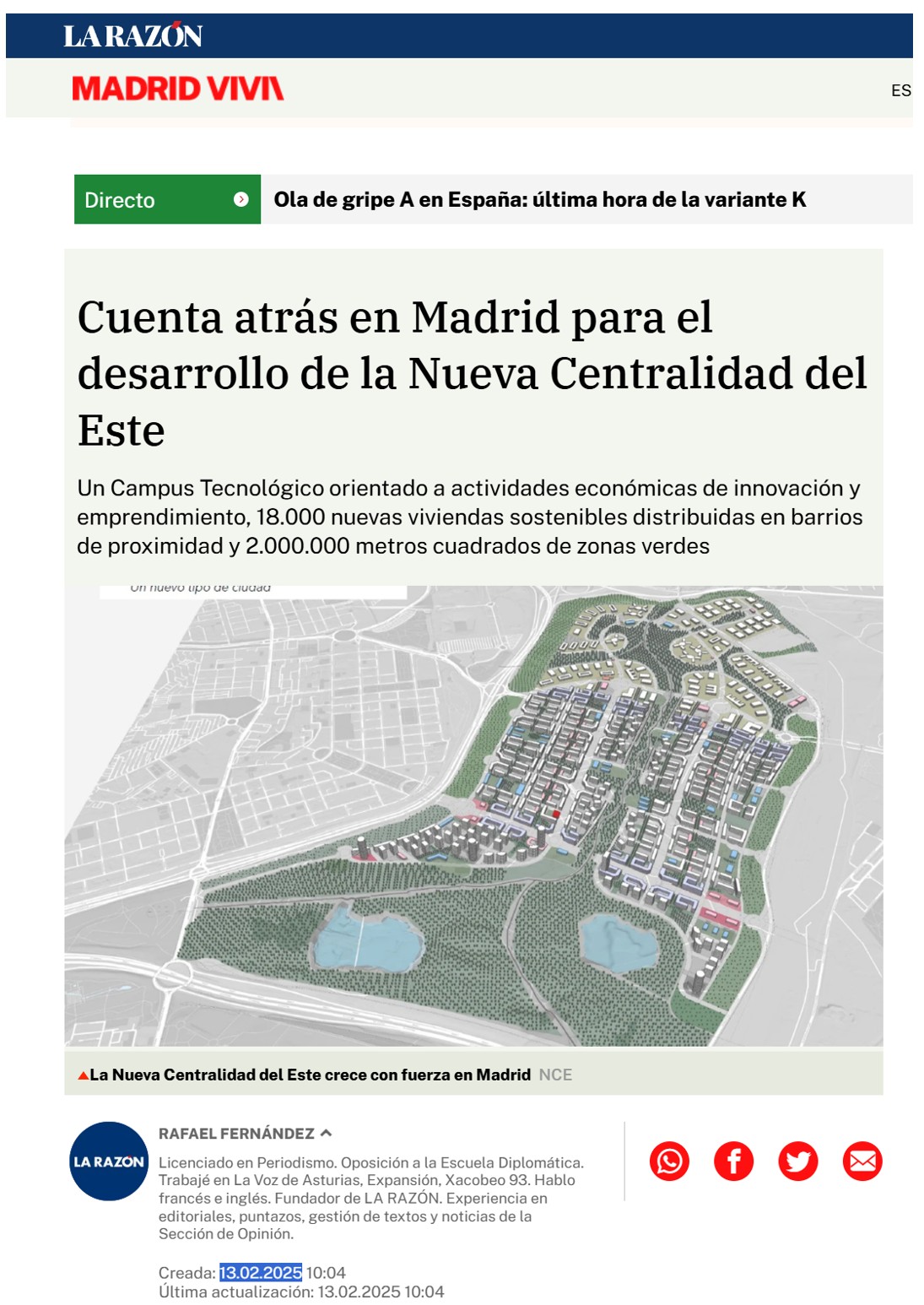La Nueva Centralidad del Este mejorará la calidad de vida y de la ciudad de Madrid