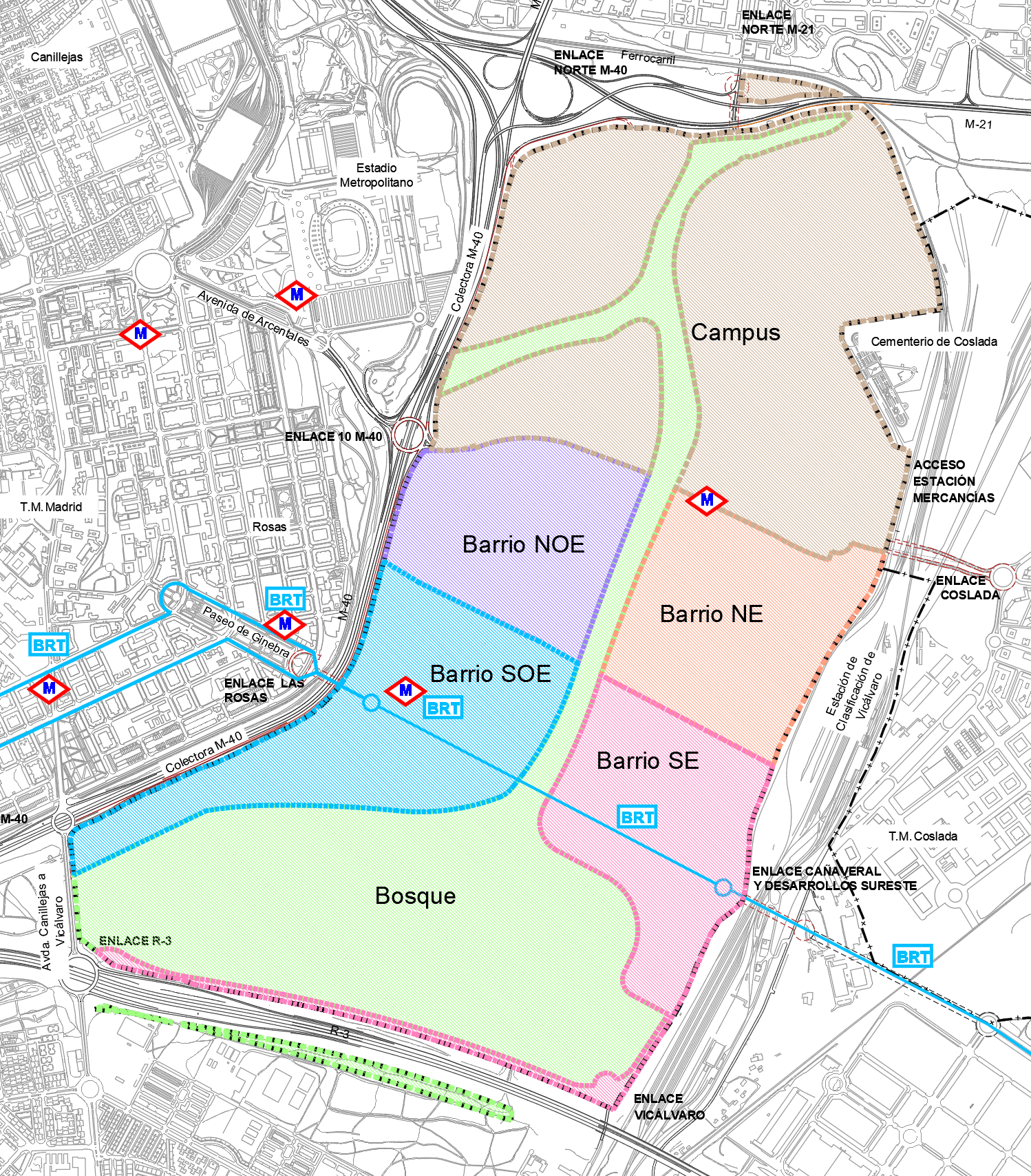 La Nueva Centralidad del Este está formada por casi seis millones de metros cuadrados donde se podrían levantar hasta 20.000 viviendas y se ubica junto al distrito de San Blas-Canillejas